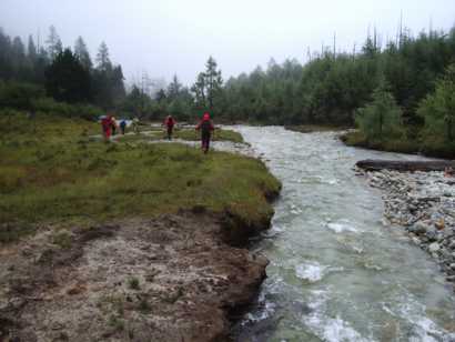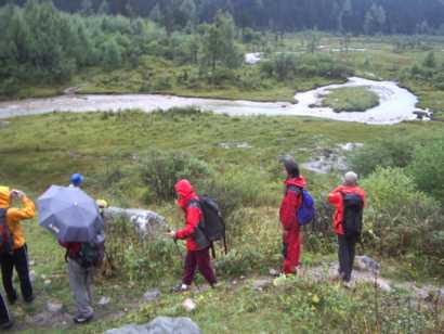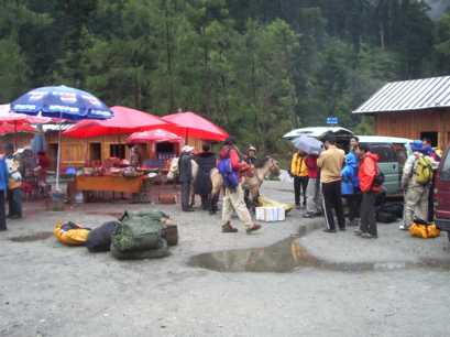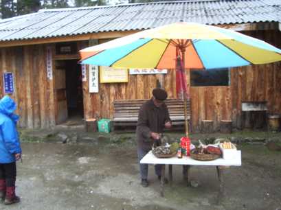 小雨の中、ベースを撤収。ピンプン溝の入り口まで、2時間ほどで下る。荷物を運んでいる馬がなかなか着かず、昼過ぎまで小屋で待つ。そこから車でピンプン溝の道路の分岐まで下り、朴頭という村の飯店で昼食を採り、成都へ帰る小川くん、佐野さん、船山さん、川野さんと別れ、残りのメンバーで温泉を訪ねる。しかし、大内さんが昨年李慶さんと行ったという温泉は、今はぬるすぎて誰も行かないらしく、他の温泉も温水プールでしかなかったので、昼食を食べた飯店に戻り、そこでシャワーを浴びて一泊することにした。