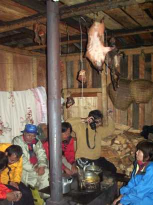 小屋の中ではいろいろな動物の肉が下がっていた