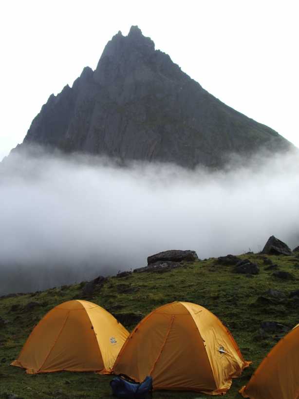 岩峰とベースキャンプ