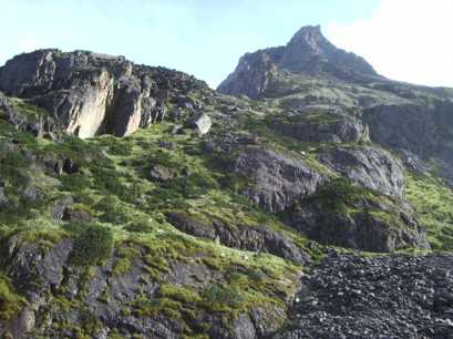 目標の岩峰を回り込んだところ。こちらからだと下部は易しそうだ