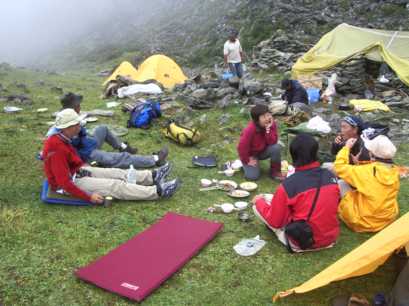 この日はさすがに頭痛などの高度障害が出た。メンバーはほとんど、多かれ少なかれ高度障害に罹ったが、和子さんだけはけろっとしていた。後で入山してきた深田さんも、共にこの高さの高所にはお強いようで、うらやましいかぎりだった。