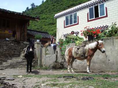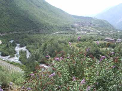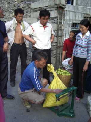 八美鎮のそばの美しいお寺で休んで、丹巴を過ぎ、小金へ。途中の農家で小金県名産のリンゴと洋梨を大量に買い求め、暗くなって双橋溝のゲートに。お馴染みの民宿の「双橋渡暇村」の王さんの所へ向かう。双橋溝は現在、観光会社が管理していて、原則的に観光バスしか入れないため、複雑な手続きを経て、やっと谷に入ることができた。