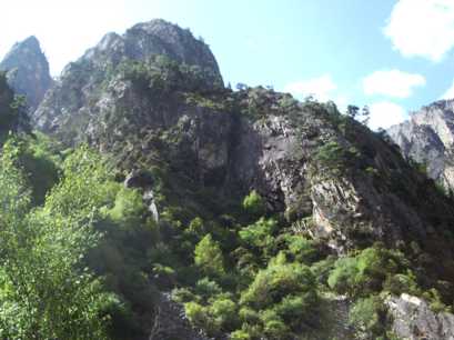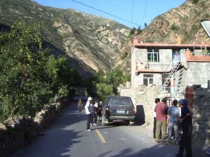 蓮花夕照連山の偵察も終わり、一気に高度差1,300mを下る。麓の王母村で、馬を手配してくれた家で昼食。その後、再び康定を経て、ミニヤ・コンカ衛星峰の偵察のため、車で楡林〜得安間の峠へ。ガスが出てきて、肌寒い。この3.900mあまりの峠は25日に逆の得安から越える予定だったが通行止めで通れないと言われていた所だ。実際通行止めだったようで、全く車の往来がなかった。峠から未舗装の脇道に乗り入れ、岩峰が見えるところまで行ってベースを張ろうとしたが、この脇道も落石がひどく、ガスで視界も悪い上に、もう夕方になっていたので、偵察をあきらめ、康定に引き返した。
