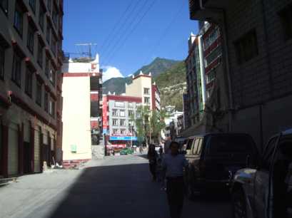 この日はテント泊の予定が、康定のホテル泊に変わったため、ホテルのランクを落として、定点渉外賓館に泊まった。とはいえ、ベッドの極彩色の飾りやループ状の階段も珍しく、悪くないホテルだった。夕食は、ホテルの近くの店の表の、路上に置かれたテーブルで。道行く人たちが、私たちが日本語でしゃべりながら食事する様を、時折珍しげに見ていた。