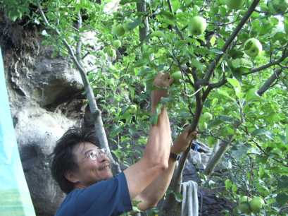 途中の農家で小金名産のリンゴや洋梨を買う