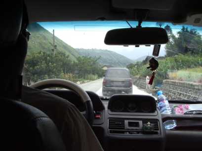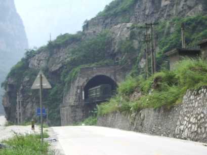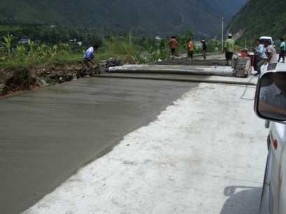 康定(カンディン)への途中、得安の先のゲートで、一方通行のため一時間待ち。トイレに寄ると、相場の5角(一元の半分)を要求された。ここから橋を渡って峠を越え、ミニヤ・コンカ衛星峰を覗いてから康定に行く予定だったが、峠の道は通行止めになっているということで、大回りすることになった。その先は、道路の水泥(セメント)舗装が人海戦術で進んでいた。四川の道路は、大きな街の中以外は、たいていがセメント舗装だった。