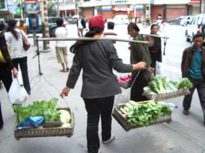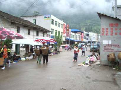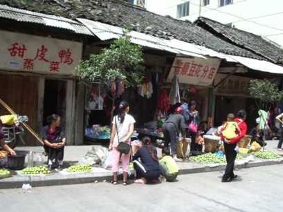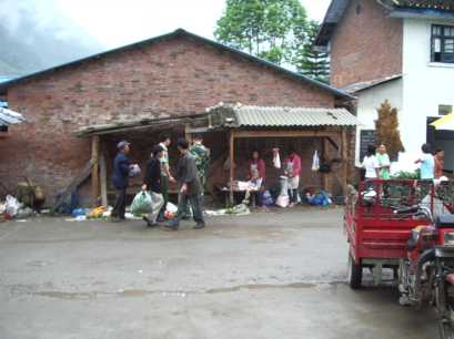 街道沿いの小さな村の露天(姜さんが交渉中)