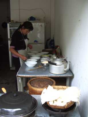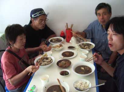 ルーディンで昼食。道路沿いの、練炭コンロと鍋とテーブルくらいしかないような小さな店で、ワンタンと麺をいただく。簡単な一椀だが、かなり旨かった。