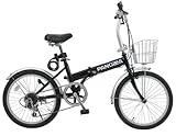 b-grow Heaven's カギ/カゴ/ライト付き20インチ折畳み自転車 シマノ6段変速付きヘブンズ ブラック BF-K206-BK |