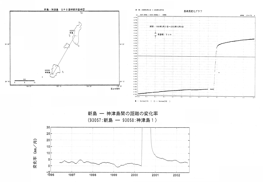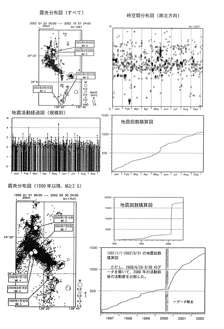 2002年9月末までの三宅島〜新島・神津島近海の地震活動と、地殻変動(図)